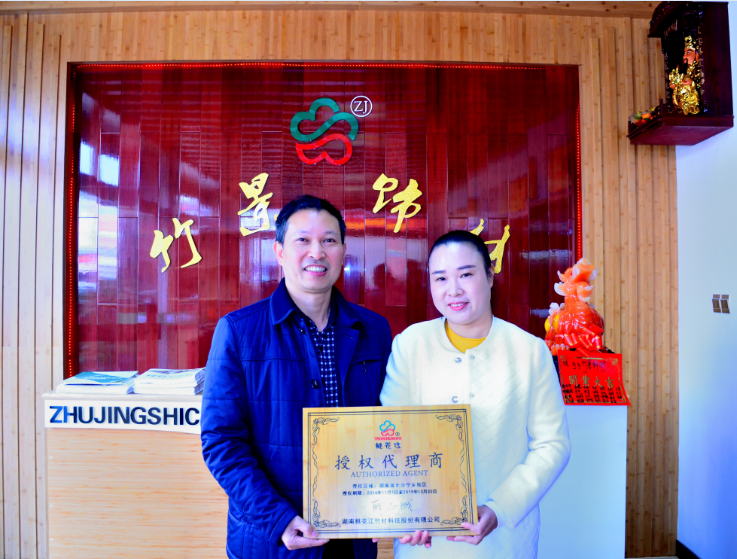 2016年12月10日,湖南桃花江竹材科技股份有限公司宁乡网点——宁乡竹景饰材实业有限公司隆重开业。开业当日,桃花江竹材科技薛志成董事长亲临现场,为网点熊杰红总经理颁发授权牌照,并祝贺生意兴隆!